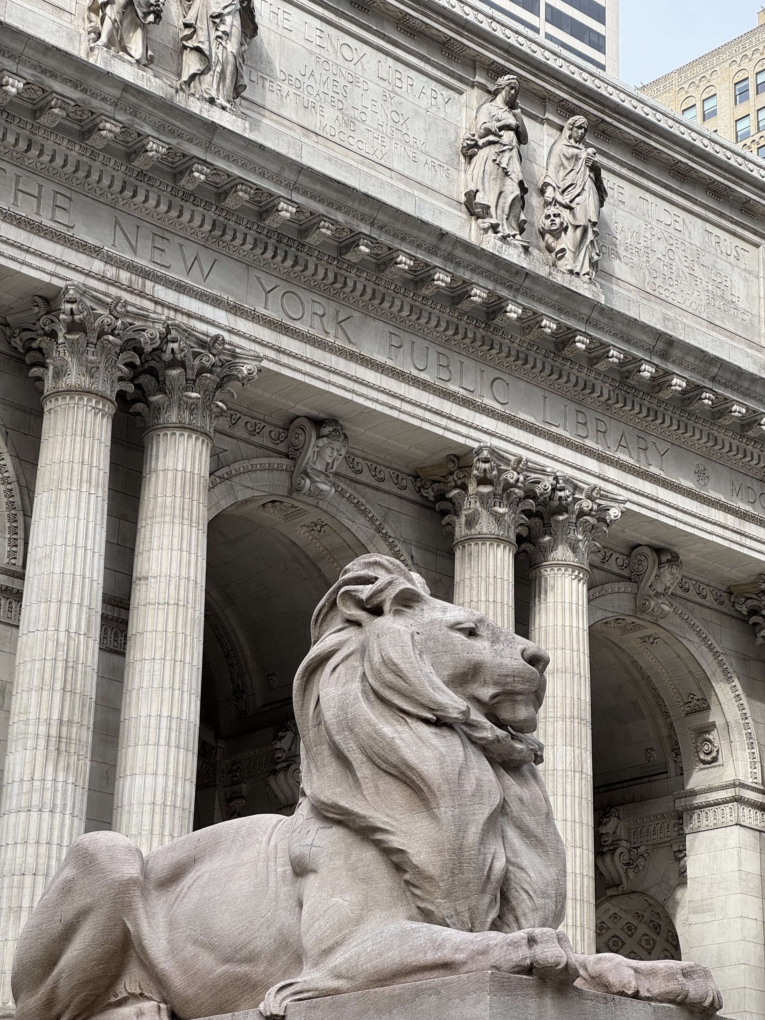 A couple more blocks to the west, you’ll find yourself in front of 5th Avenue, and here stands the New York Public Library. Protected by the resting lions - Patience and Fortitude - at the front, the marble façade is monumental. As a student in the city I had the opportunity to make use of this beautiful library, anyone can walk in, read, study, visit the spaces, or register for a free library card to borrow books and access the library’s resources. Nonetheless, it’s the Rose Main Reading Room that is truly impressing: vast, quiet, and ceremonial.